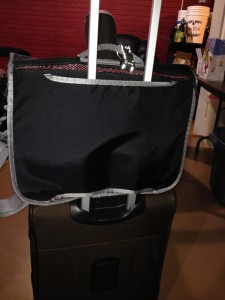 Second, the bag has a luggage passthrough that allows for attachment to a rolling piece of luggage. This is an ingenious addition, especially for someone like me that rarely checks bags but has a wheelie bag as a carry-on.